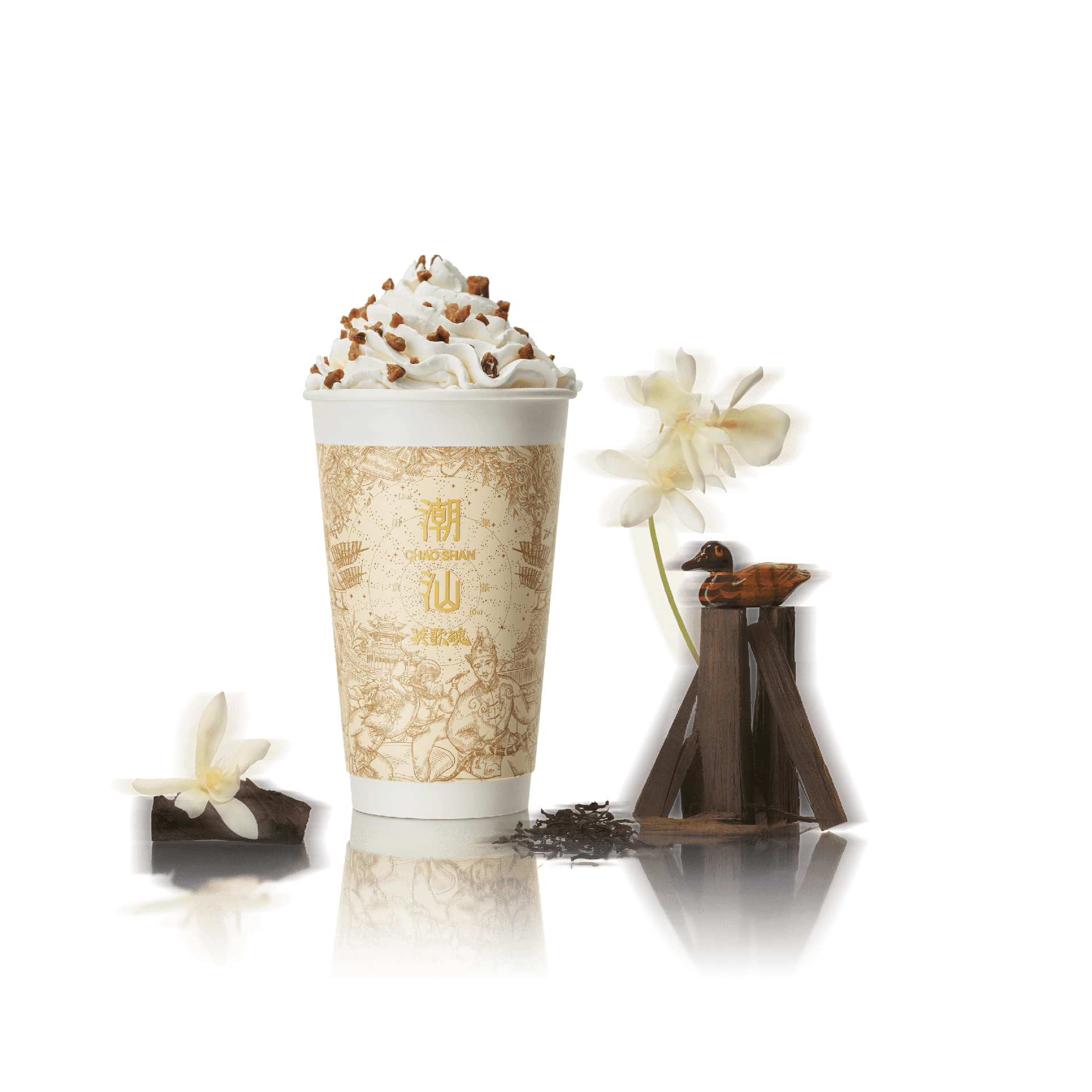 凤凰原产单丛鸭屎香搭配牧场牛乳,丝滑醇香,动物奶油雪顶一口轻盈。