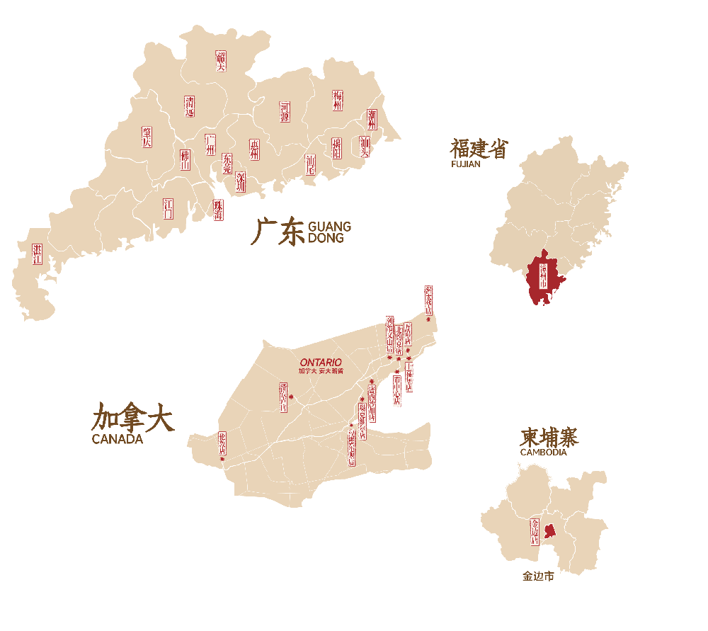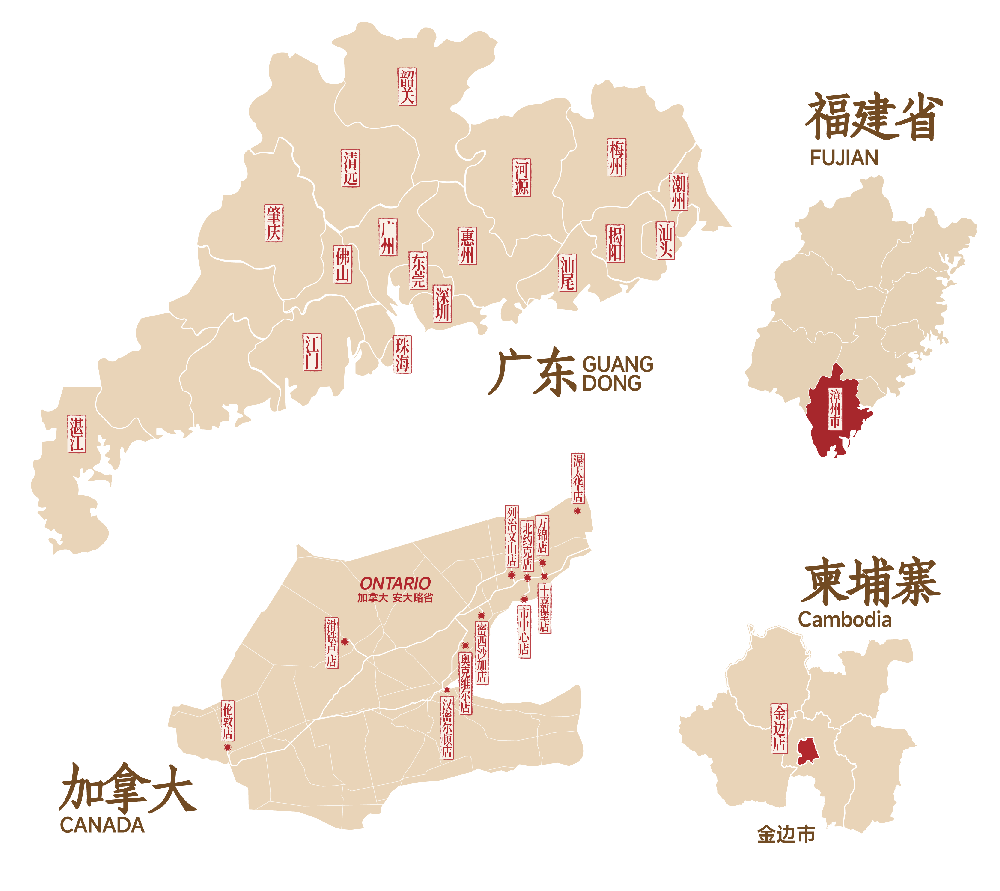 普宁、深圳、广州、东莞、中山、揭阳、潮州、漳州、加拿大、柬埔寨等多个地区开设超过200家门店